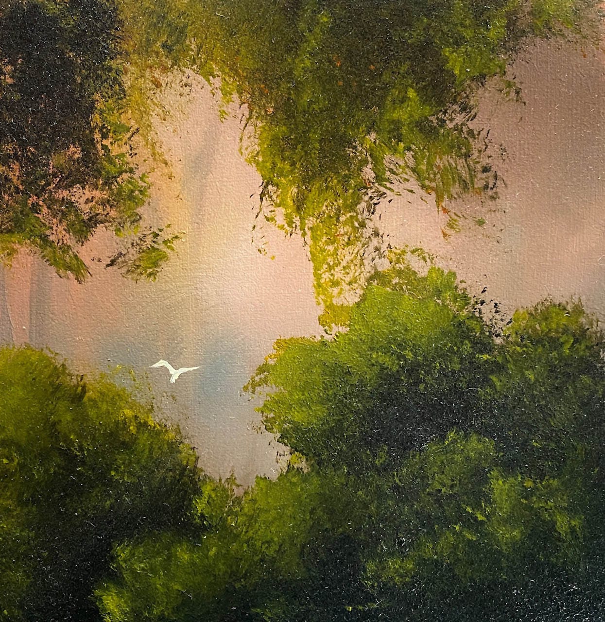 I am also referring to all types of atmospheric optical phenomena and philosophic modal illusions, as well as the illusions that can be conveyed on canvas by painterly effects. Inspired by Turner and the Romantics, I aspire to convey the experience of being immersed in the landscape rather than making a realistic representation of it. Creations born of experience and memory of place, my works begin as abstractions; manipulating oil paint, exploring spaces that exist only on the canvas, blurring and rubbing back, adding, and reducing until eventually a narrative is revealed. Like memories indistinct, they generate an atmospheric poetry, if only momentarily.