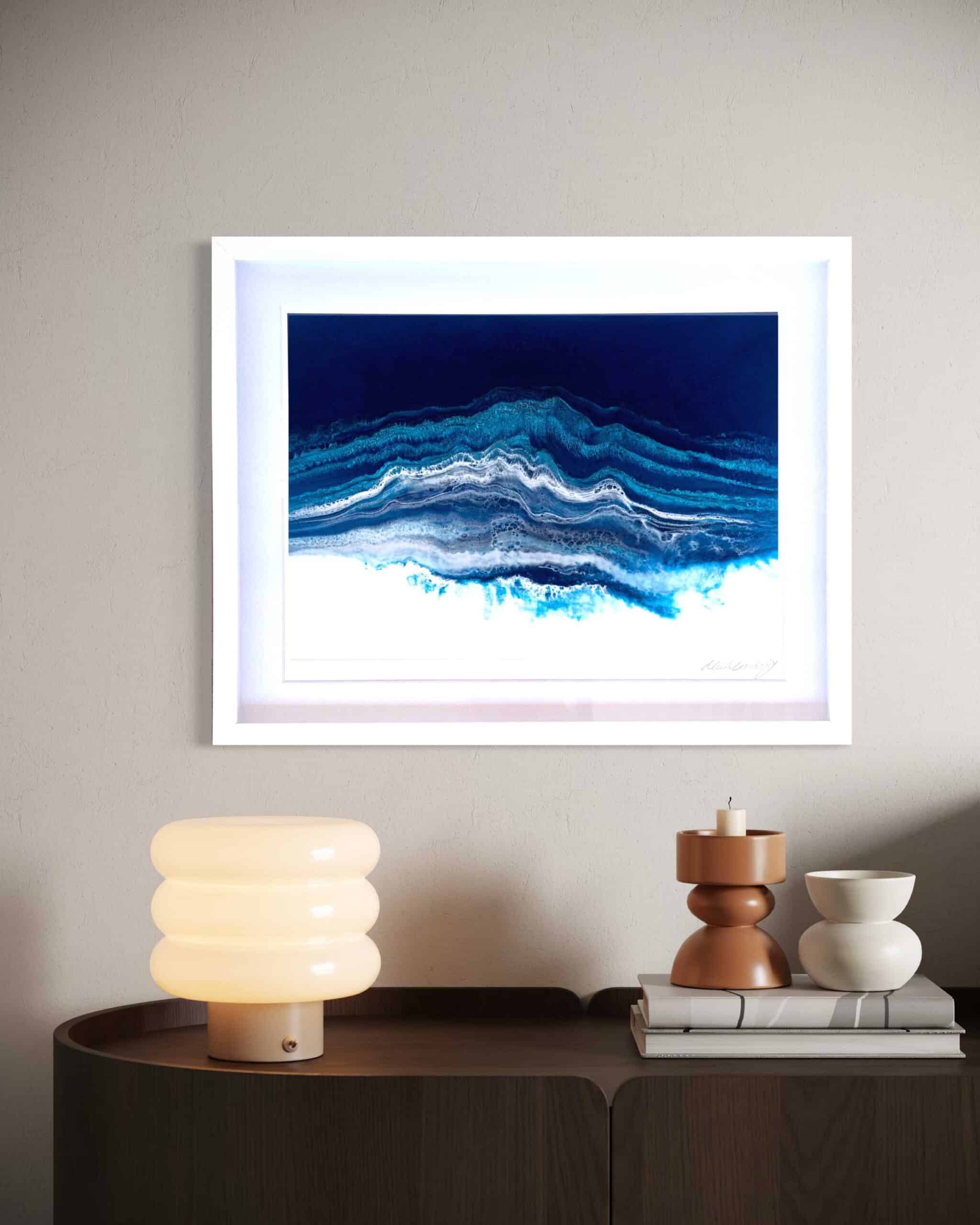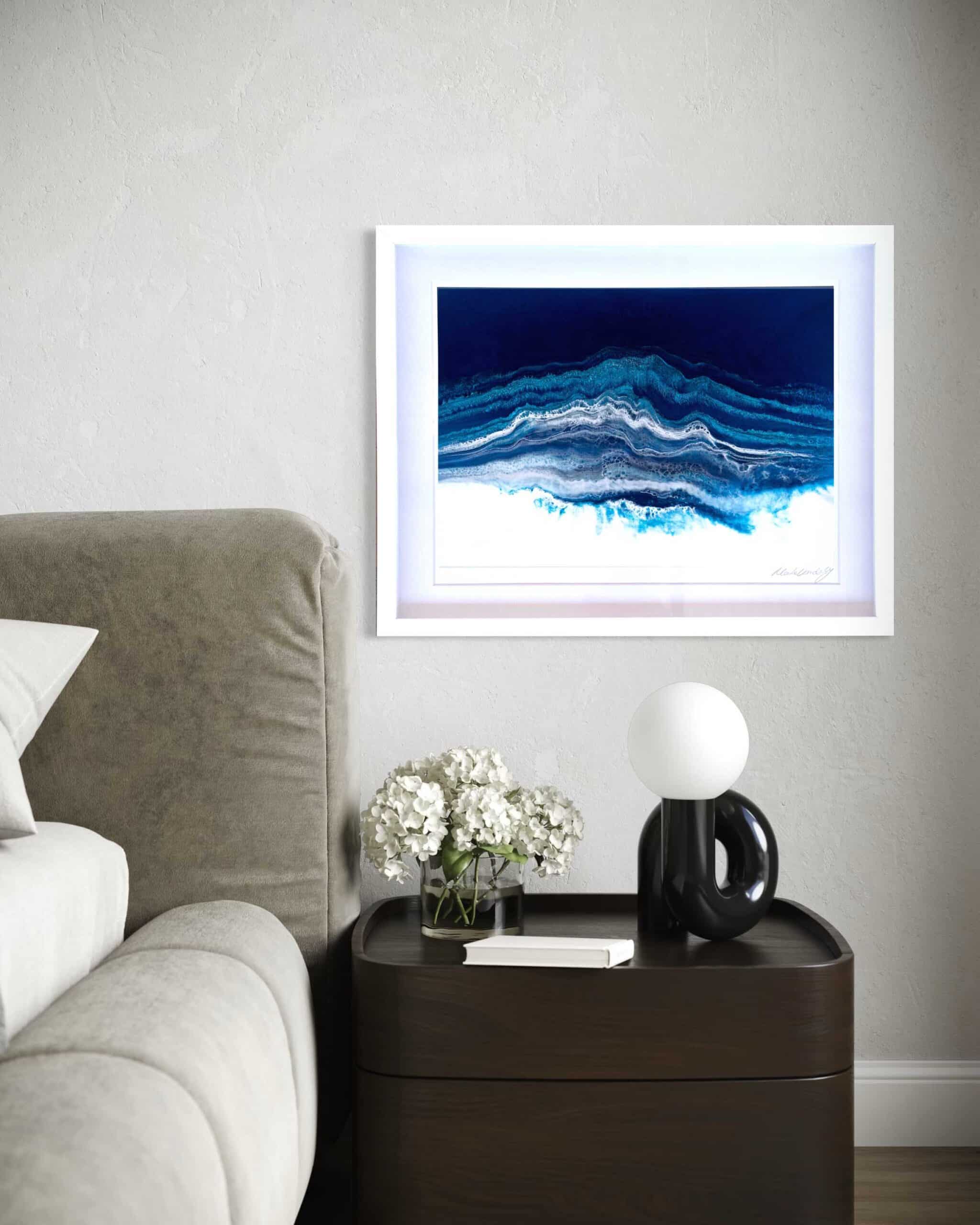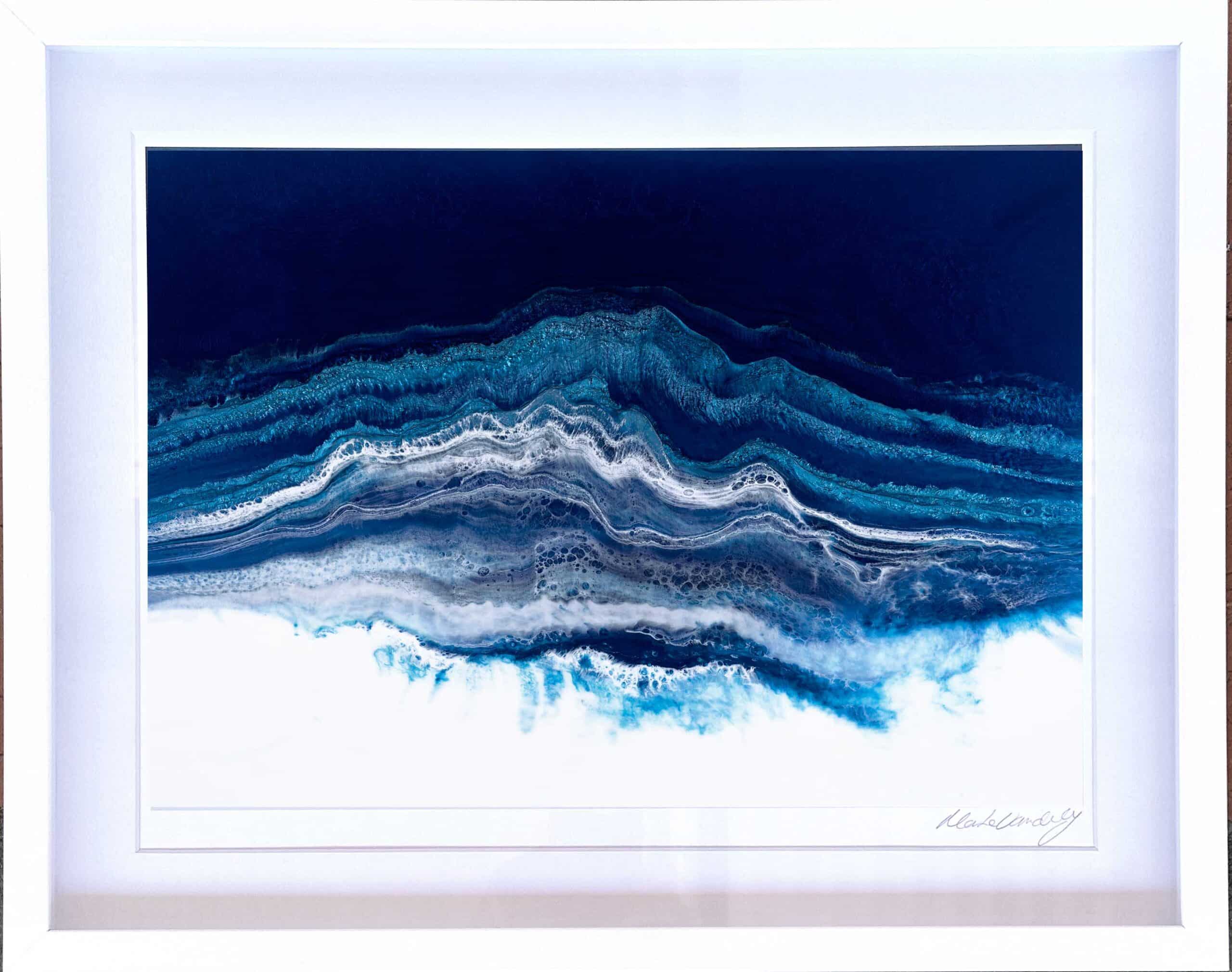 Martine Vanderspuy has had a lifetime love affair with the sea, resulting in her aerial inspired resin art. Through experimentation, she has mastered the difficult process of painting with resin, creating photo realistic work depicting the moods of the ocean. Martine’s paintings inspire the feeling of movement and open a visual window onto the sea. Her bold compositions use the fluidity and translucency of resin to capture dazzling effects of light and water.