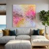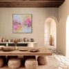 Working with oil paint, charcoal, spray paint and oil crayons, she captures a spectrum of moods – from quiet, melancholy moments of indigo and teal to swathes of Persian pink and saffron. The viewer can choose where they sit in this vast spectrum of emotion; whether they gravitate towards the darkness or the light.