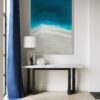 Martine Vanderspuy has had a lifetime love affair with the sea, resulting in her aerial inspired resin art. Through experimentation, she has mastered the difficult process of painting with resin, creating photo realistic work depicting the moods of the ocean. Martine’s paintings inspire the feeling of movement and open a visual window onto the sea. Her bold compositions use the fluidity and translucency of resin to capture dazzling effects of light and water.