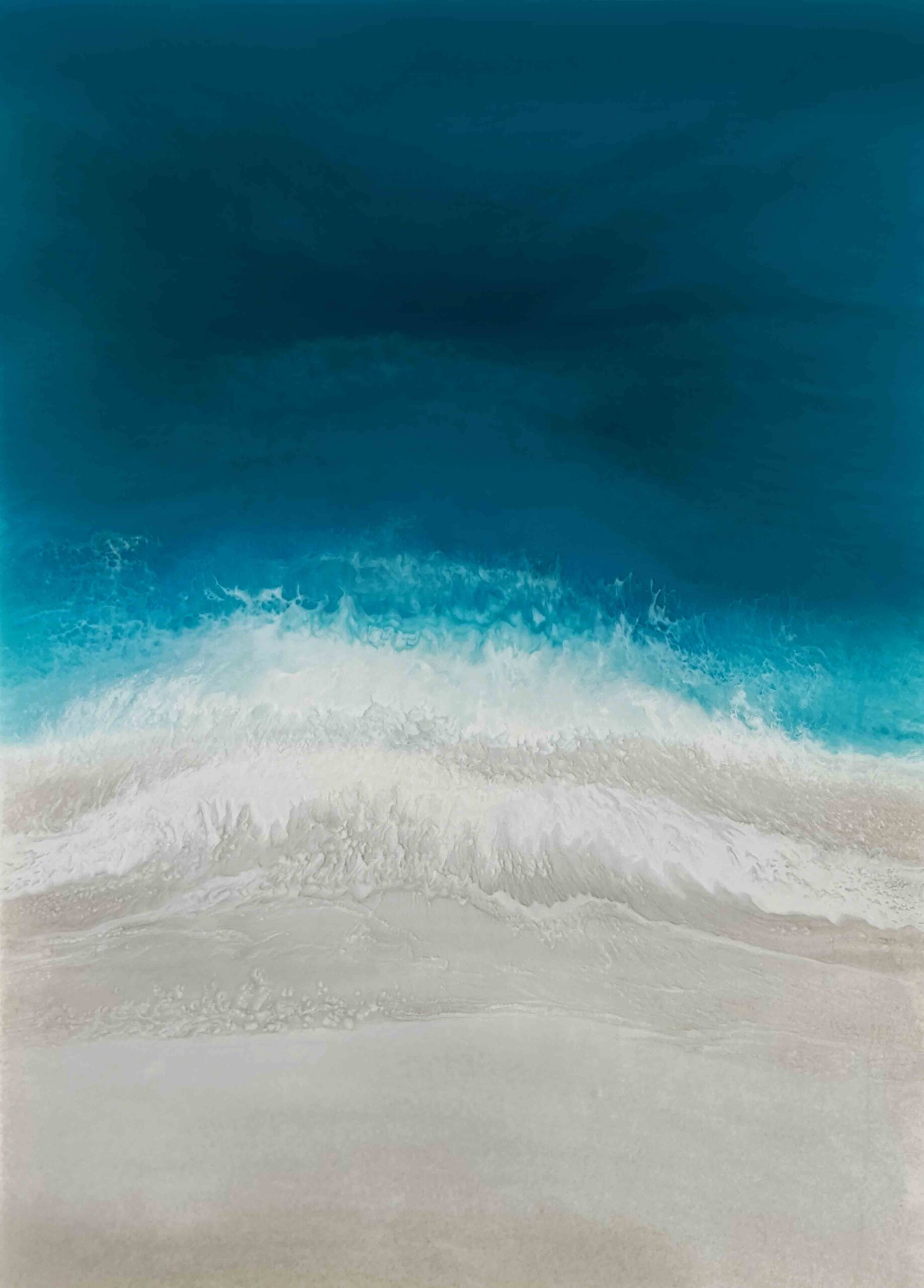 Martine Vanderspuy has had a lifetime love affair with the sea, resulting in her aerial inspired resin art. Through experimentation, she has mastered the difficult process of painting with resin, creating photo realistic work depicting the moods of the ocean. Martine’s paintings inspire the feeling of movement and open a visual window onto the sea. Her bold compositions use the fluidity and translucency of resin to capture dazzling effects of light and water.