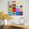 Cassandra Ng is a contemporary Sydney based artist. Her current body of work explores the idea of Synaesthesia, where some people who hear music see colour. This type of Synaesthesia is called Chromesthesia. Being inspired by geometric abstraction, Cassandra creates paintings in morse code that tap out the lyrics to songs and combines them with playfully mixed palettes to make works that have meaning and movement.