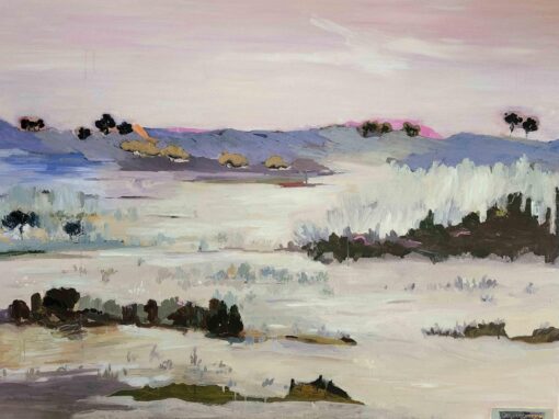 After many years of painting watercolor and Chinese brush painting I began painting with acrylics in 2004. Over time the three mediums have fused together. The unexpected result is a fresh new style with syrupy washes, brush marks and paint drips together with blocks of colour that eventually contribute to the creation of a life being born on canvas. “I hope my landscapes transport the viewer to another place so they can make their own stories.