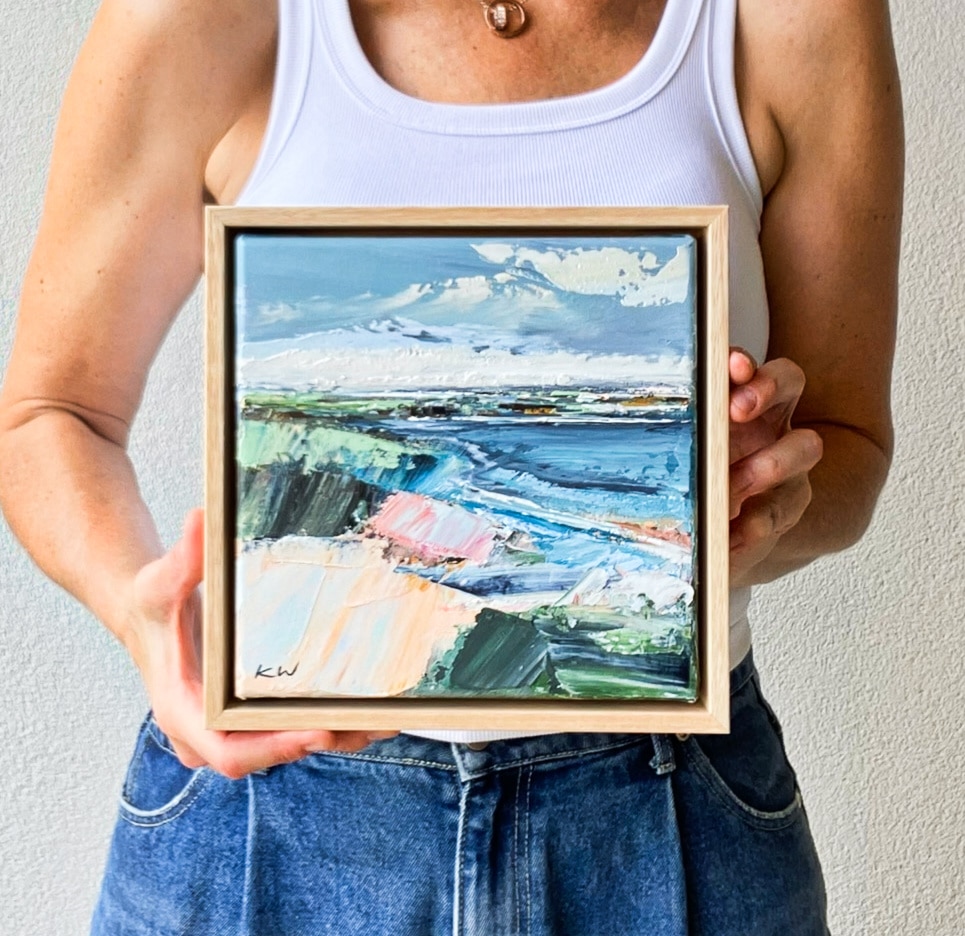 Born in 1974, Katie Wyatt, paints large format impressionist pieces that are heavily textured, impasto works based on her own experiences, memories, photographs and recollections. Katie’s graphic design background is also evident through her solid compositions and strong colour contrasts.