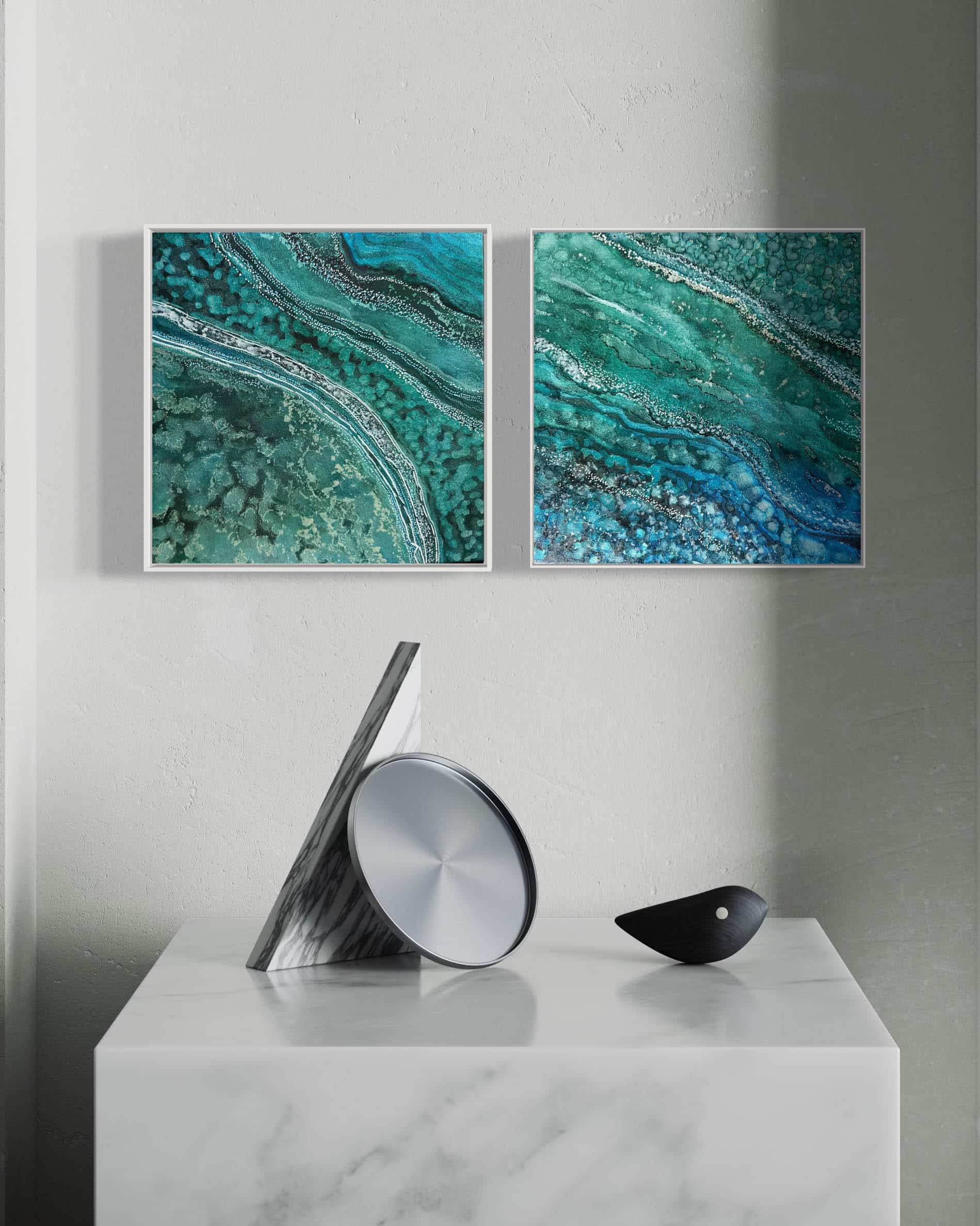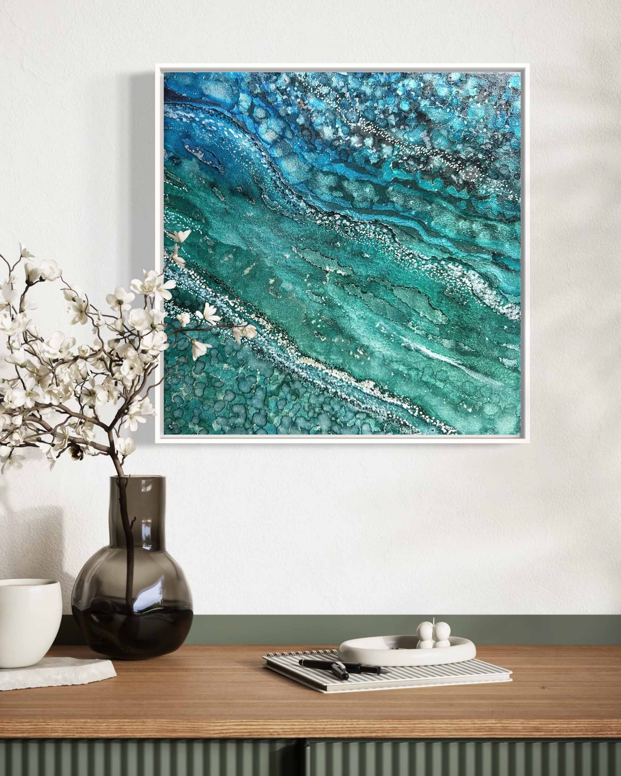 Martine Vanderspuy has had a lifetime love affair with the sea, resulting in her aerial inspired resin art. Martine’s ‘coral reef’ paintings are inspired by our beautiful Australian reefs. Capturing the vibrantly dazzling rainbow of colour, and the magical waters. Preserving the reefs forever in a painting.