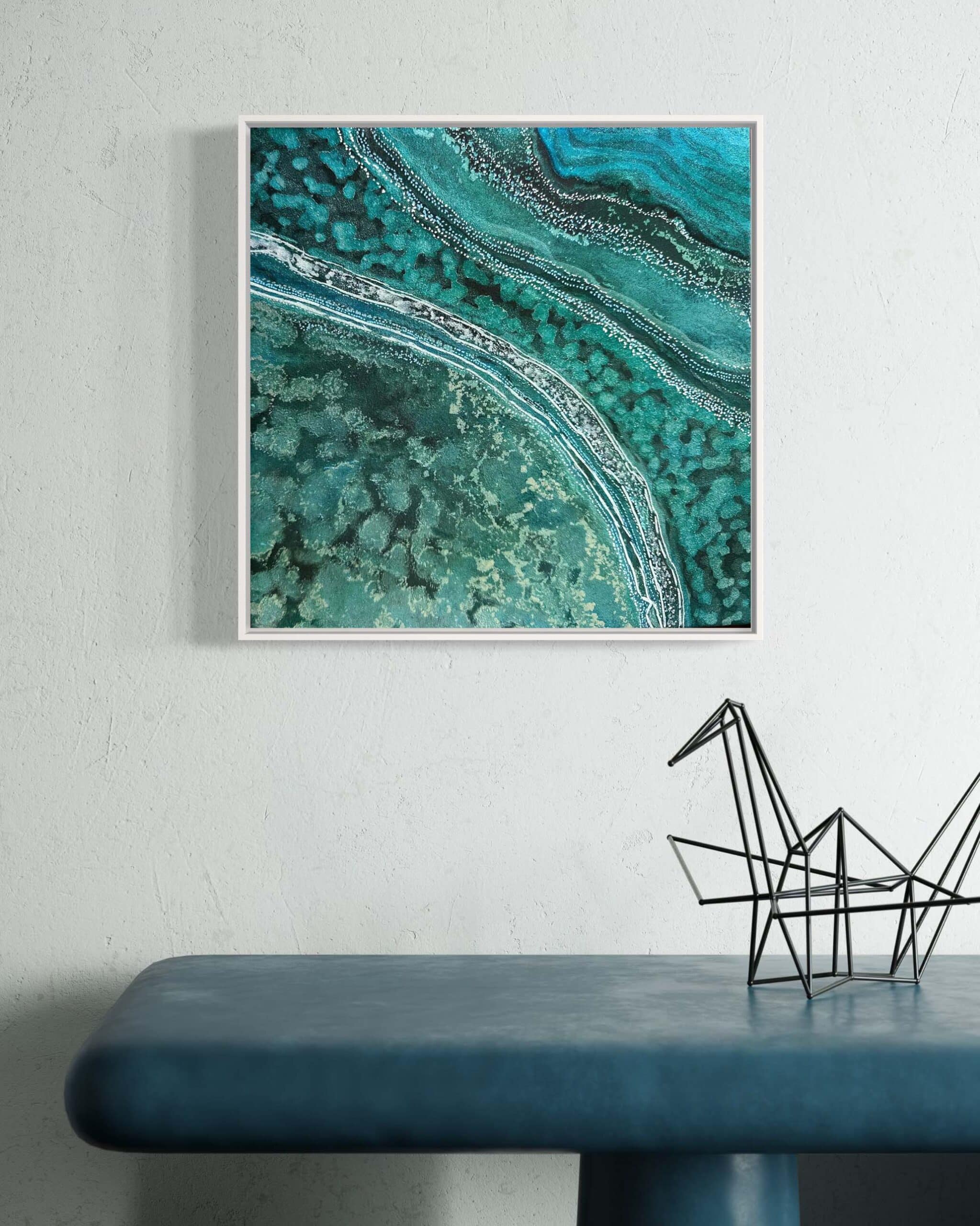 Martine Vanderspuy has had a lifetime love affair with the sea, resulting in her aerial inspired resin art. Martine’s ‘coral reef’ paintings are inspired by our beautiful Australian reefs. Capturing the vibrantly dazzling rainbow of colour, and the magical waters. Preserving the reefs forever in a painting.