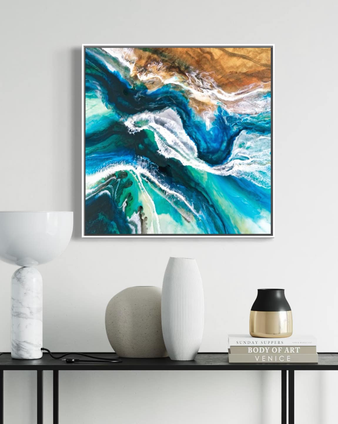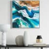 Martine Vanderspuy has had a lifetime love affair with the sea, resulting in her aerial inspired resin art. Through experimentation, she has mastered the difficult process of painting with resin, creating photo realistic work depicting the moods of the ocean. Martine’s paintings inspire the feeling of movement and open a visual window onto the sea. Her bold compositions use the fluidity and translucency of resin to capture dazzling effects of light and water.