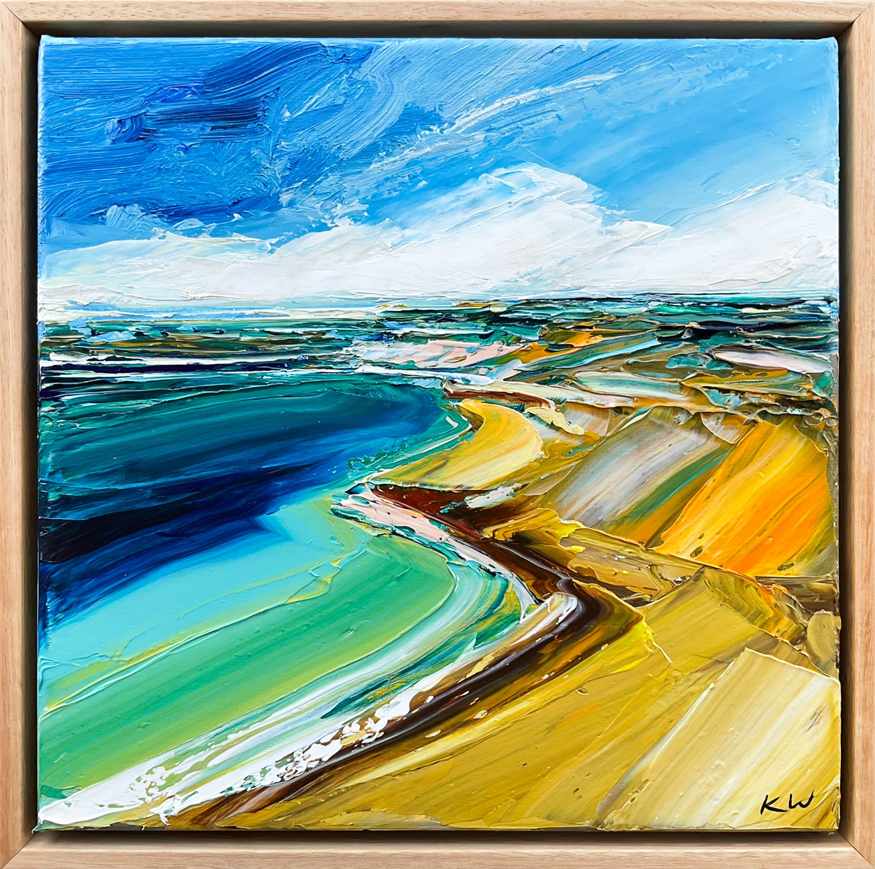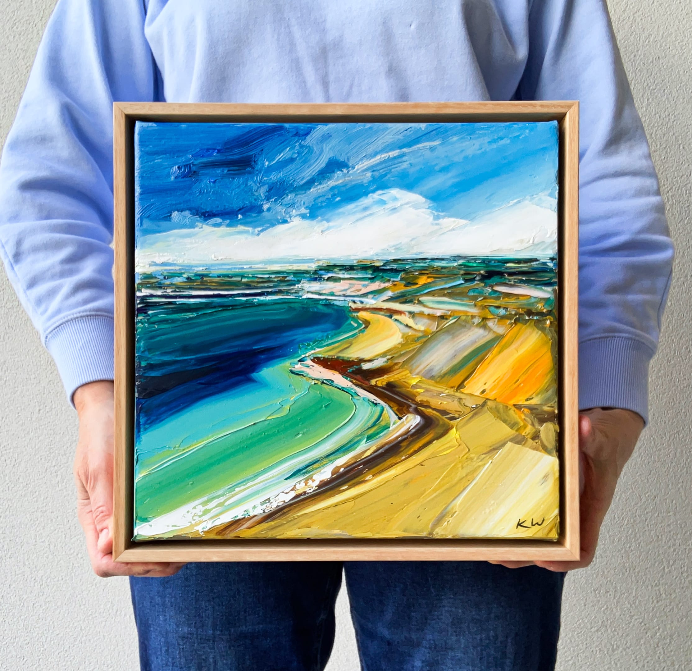 Born in 1974, Katie Wyatt, paints large format impressionist pieces that are heavily textured, impasto works based on her own experiences, memories, photographs and recollections. Katie’s graphic design background is also evident through her solid compositions and strong colour contrasts.