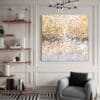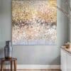‘Wild at Heart’ is an expressive abstract oil painting featuring soft, layered brushstrokes in earthy tones of brown, beige, and blush pink, with hints of blue. The composition suggests organic movement, reminiscent of wildflowers or leaves scattered by the wind. The delicate drips of paint at the bottom evoke a sense of fluidity and freedom, aligning with the artwork’s untamed and emotional essence.