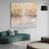 Working with oil paint, charcoal, spray paint and oil crayons, she captures a spectrum of moods – from quiet, melancholy moments of indigo and teal to swathes of Persian pink and saffron. The viewer can choose where they sit in this vast spectrum of emotion; whether they gravitate towards the darkness or the light.