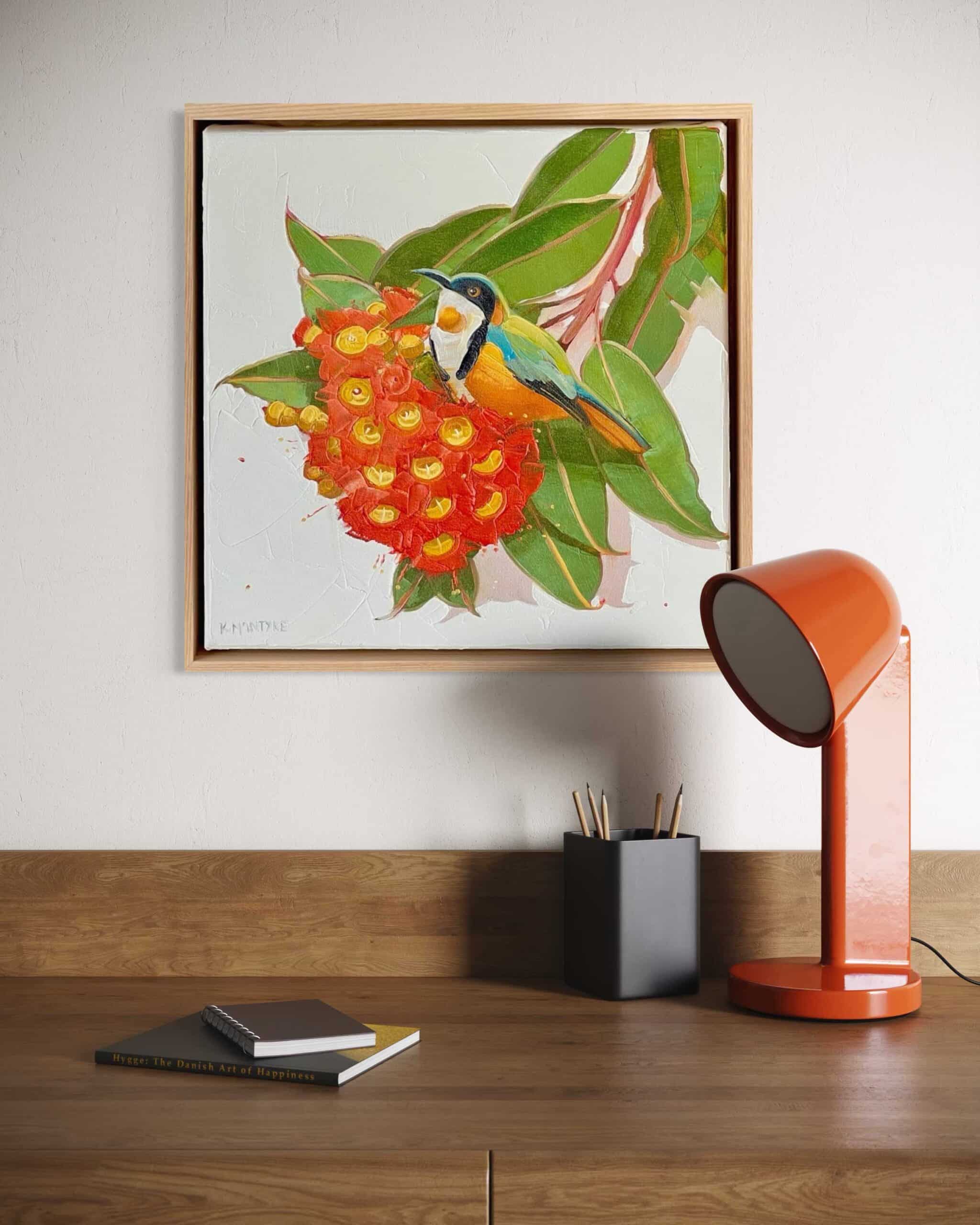 Kirsty McIntyre is a Melbourne based artist working mainly with palette knife and oil paint on canvas, with Australian themed still life subjects, and the backyard birds that visit her compositions.