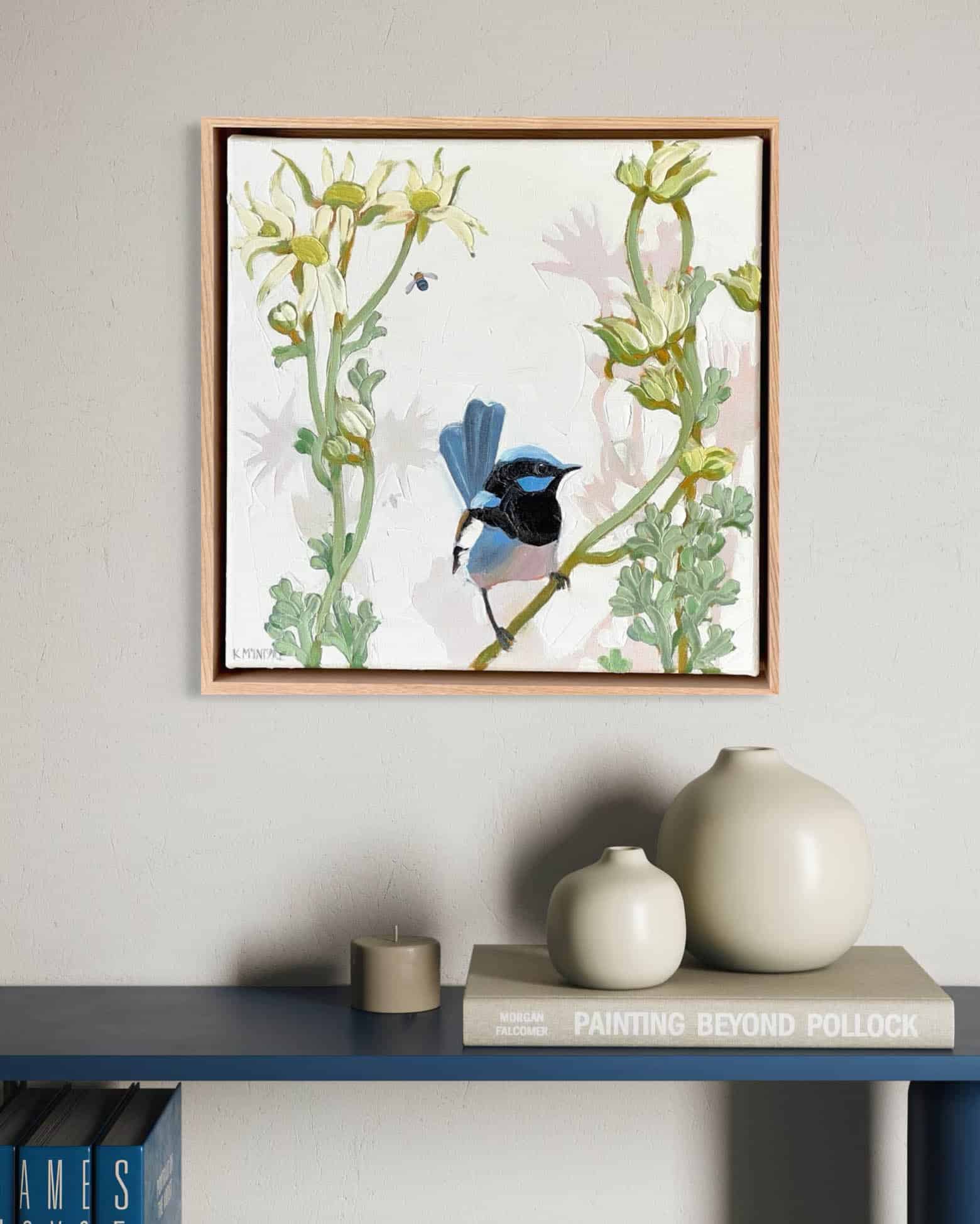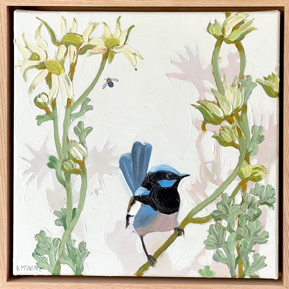 Fairy wren with flannel flowers – Kirsty McIntyre