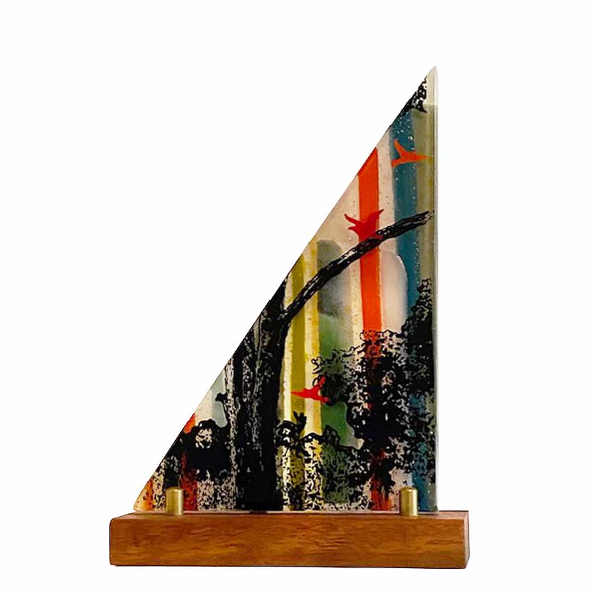 I am an Australian artist and live in the city of Melbourne. Using inspiration from nature around my home and photographs from my travels, I work from my studio at home; drawing, designing, cutting glass, creating silk screens and then printing onto the glass to create glass art panels.