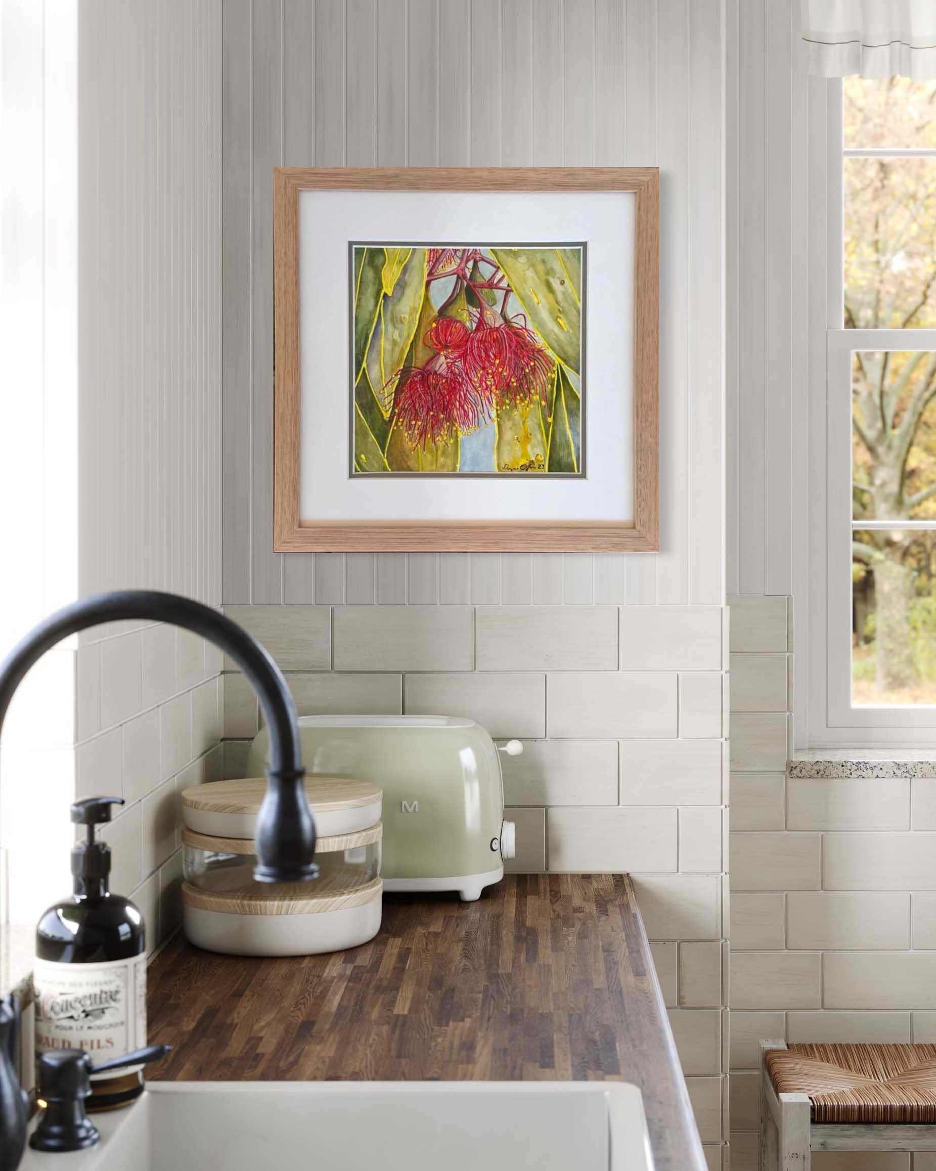 Suzie’s work centres on the intimate details of the landscape – subtle shifts of light, the structure of petals and leaves, the heat and scent of eucalypts, and the moments of quiet presence often overlooked in daily life. Through watercolour, gouache, and photographic study, she examines how colour, texture, and form can evoke memory and renewed attention. Her process begins with direct encounter: noticing how sunlight falls across blossoms, how colour changes throughout the day, or how a plant holds its shape in stillnes