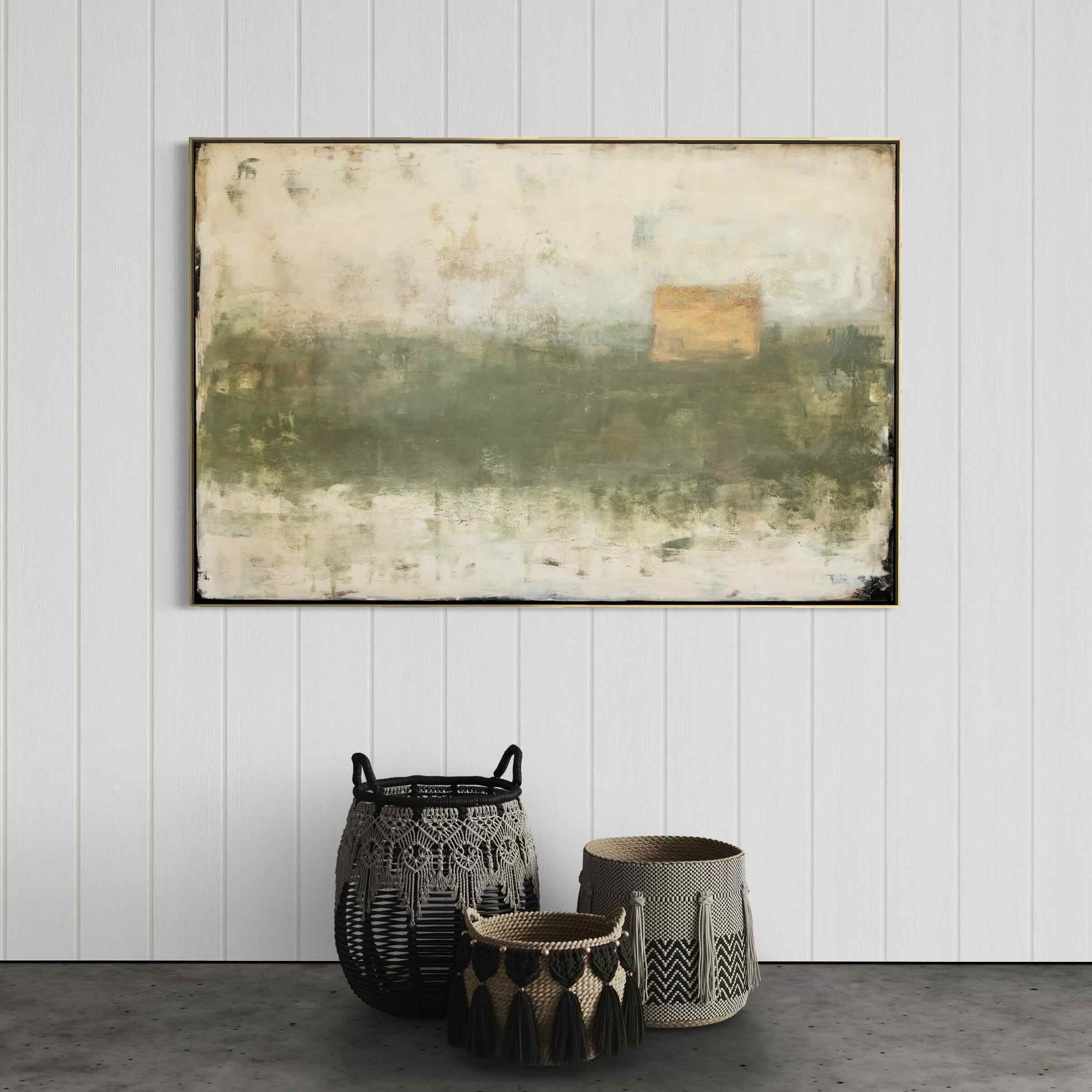 I aim to create interest and balance on the canvas, using energy while at the same time creating a sense of calm. I paint from memory, drawing on my inspiration and emotion; being lost in the moment is a necessary part of my process. It’s about letting go, listening to my intuition, experimenting, playing, feeling, later analyzing and responding to what is in front of me. As the painting evolves, often only a hint of the early layers are left but enough to help shape the final layer, adding character, depth and curiosity. For me my painting is finished when I find myself gazing at it with interest and calm.
