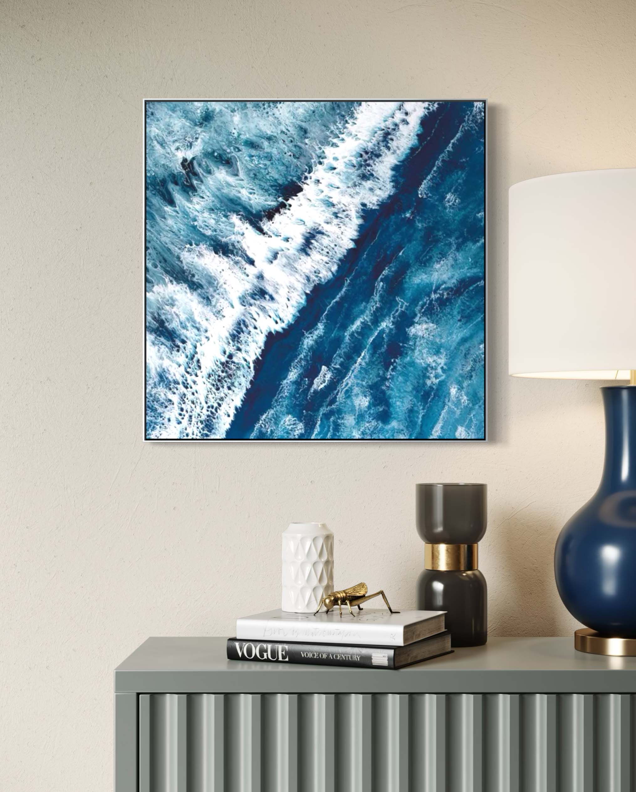 Martine Vanderspuy has had a lifetime love affair with the sea, resulting in her aerial inspired resin art. Through experimentation, she has mastered the difficult process of painting with resin, creating photo realistic work depicting the moods of the ocean. Martine’s paintings inspire the feeling of movement and open a visual window onto the sea. Her bold compositions use the fluidity and translucency of resin to capture dazzling effects of light and water.