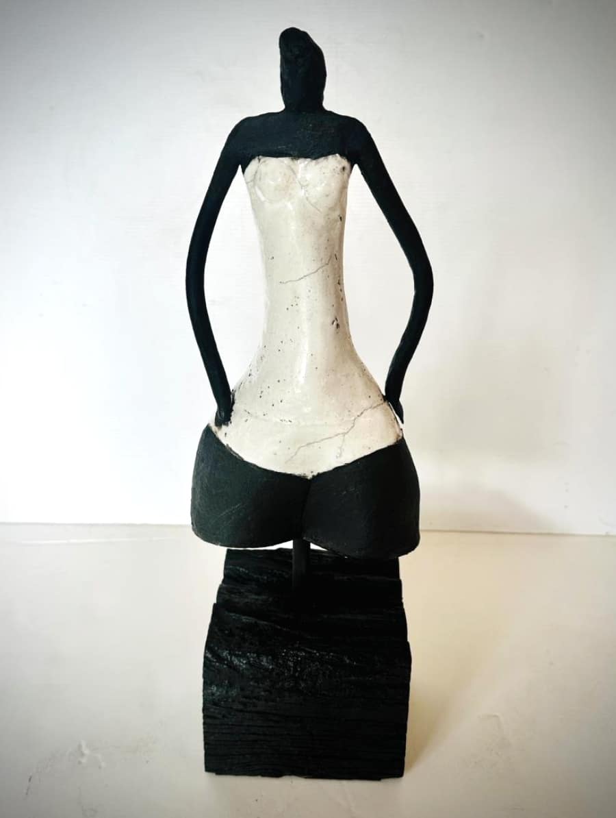 - Fired in a Raku Kiln and blackened in reduction barrel