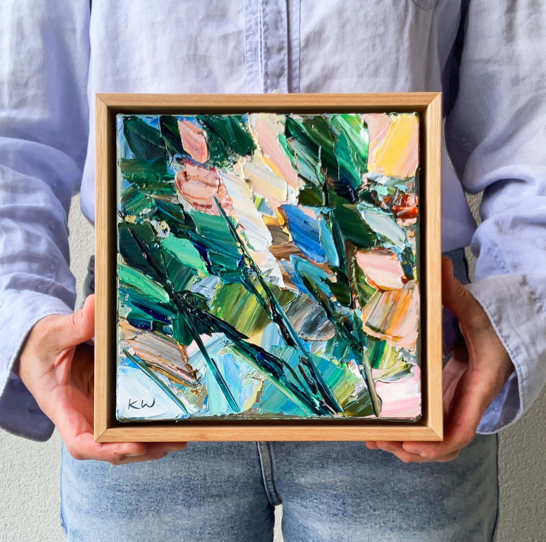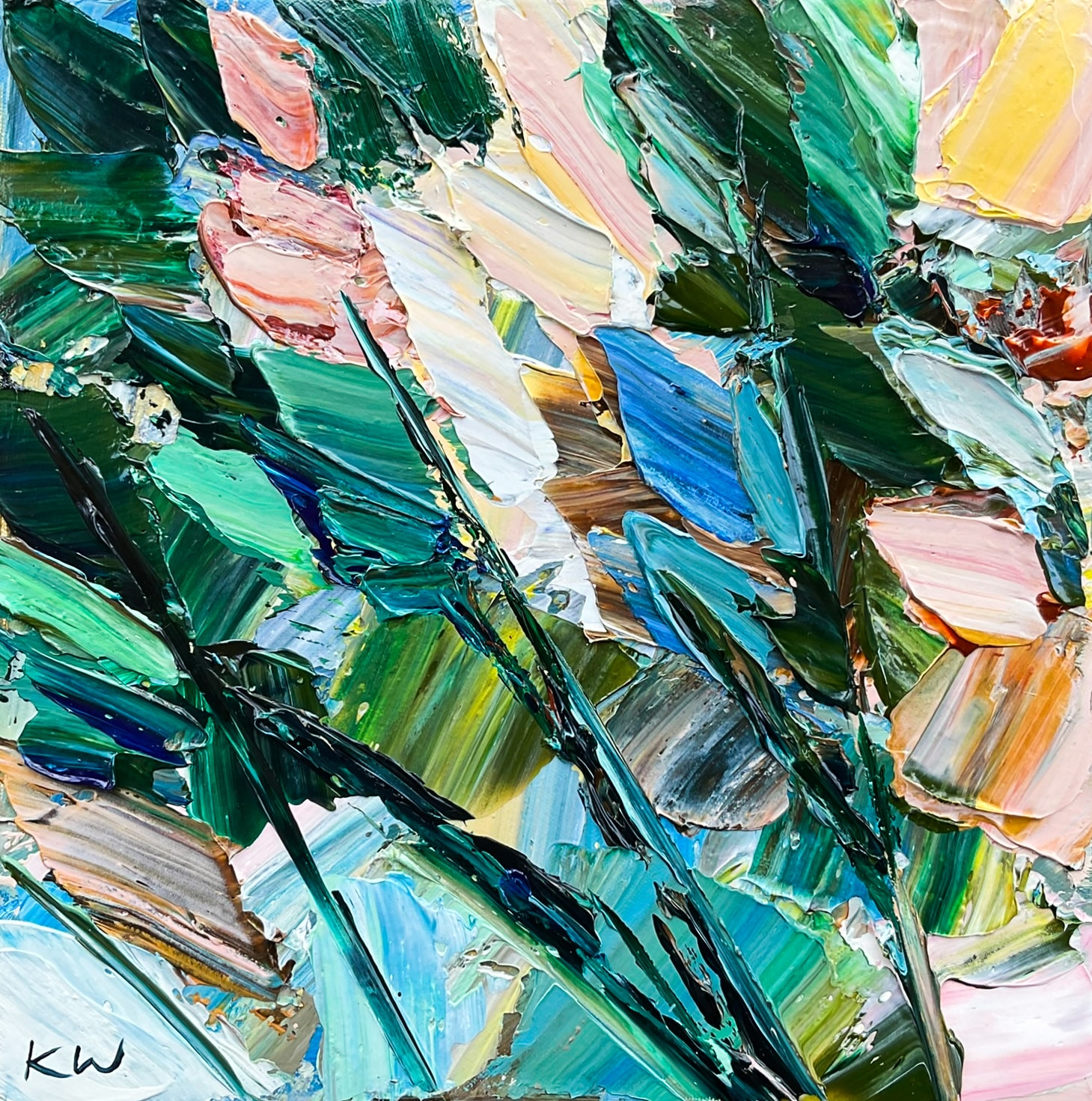 Born in 1974, Katie Wyatt, paints large format impressionist pieces that are heavily textured, impasto works based on her own experiences, memories, photographs and recollections. Katie’s graphic design background is also evident through her solid compositions and strong colour contrasts.