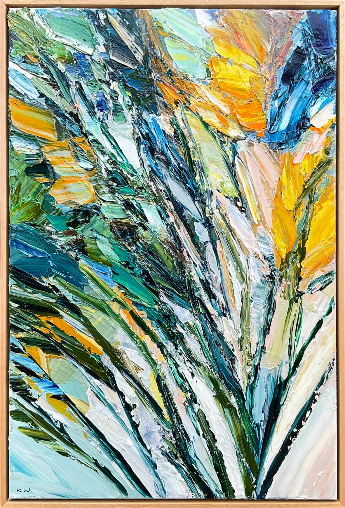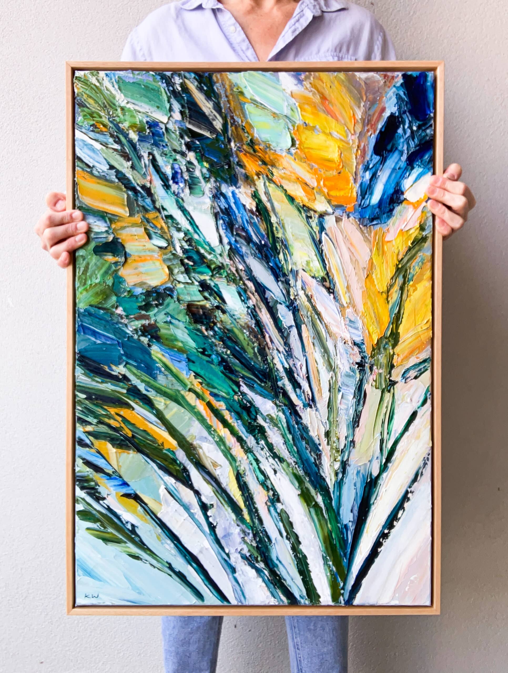 Born in 1974, Katie Wyatt, paints large format impressionist pieces that are heavily textured, impasto works based on her own experiences, memories, photographs and recollections. Katie’s graphic design background is also evident through her solid compositions and strong colour contrasts.