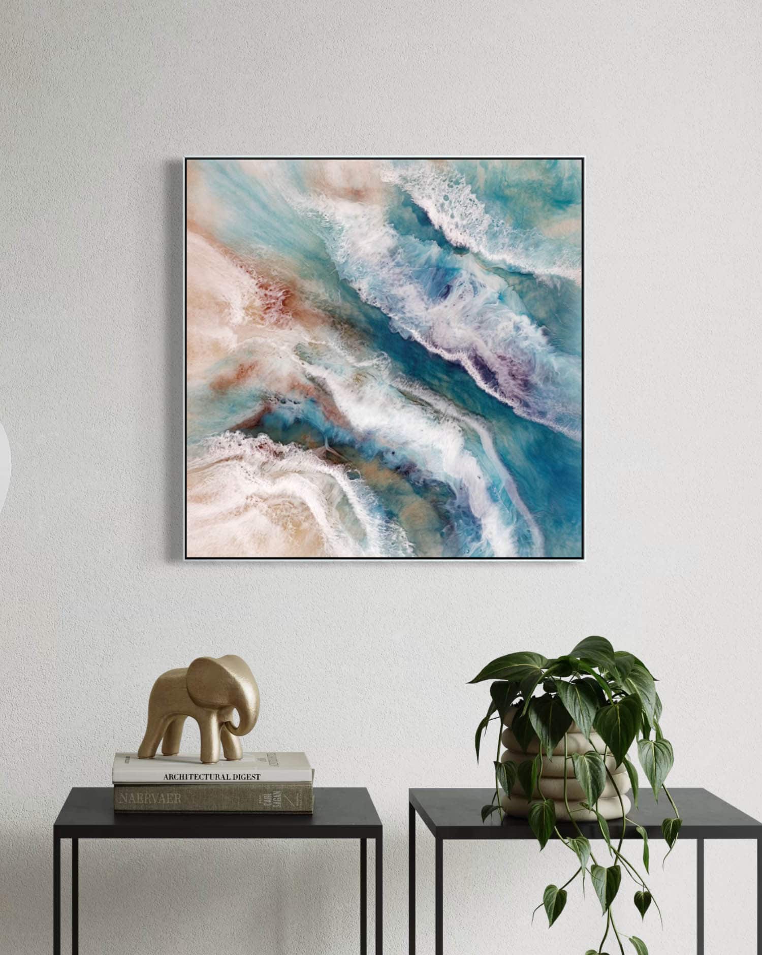 Martine Vanderspuy has had a lifetime love affair with the sea, resulting in her aerial inspired resin art. Through experimentation, she has mastered the difficult process of painting with resin, creating photo realistic work depicting the moods of the ocean. Martine’s paintings inspire the feeling of movement and open a visual window onto the sea. Her bold compositions use the fluidity and translucency of resin to capture dazzling effects of light and water.