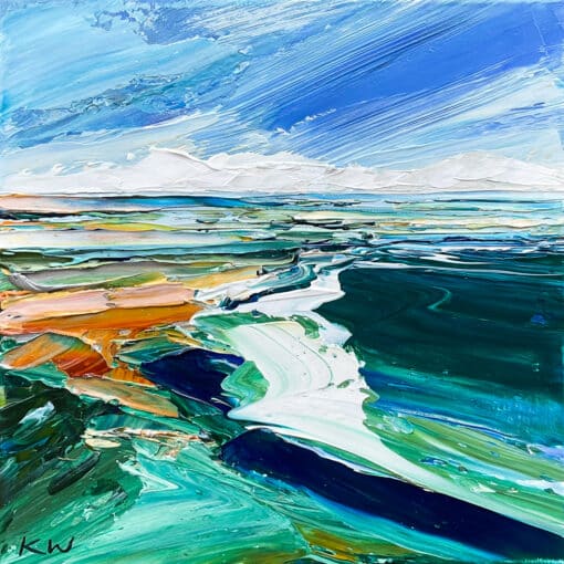Born in 1974, Katie Wyatt, paints large format impressionist pieces that are heavily textured, impasto works based on her own experiences, memories, photographs and recollections. Katie’s graphic design background is also evident through her solid compositions and strong colour contrasts.