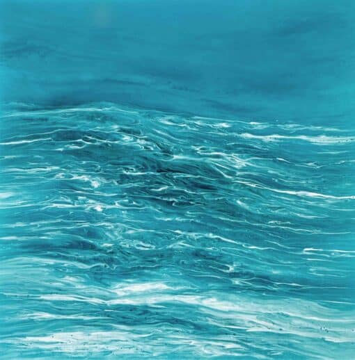In this painting, I ventured to blend realism with a touch of surrealism, using resin and pigments to capture the mysterious depths and dynamic surface of the sea. The colors and textures create a dreamlike vision of the ocean’s power and tranquility. The artwork is meant to evoke the awe one feels when faced with the vast, untamable natural world, providing a daily reminder of nature’s dual nature of calm and chaos. The piece comes alive in any space, adding a serene yet invigorating energy to your home.