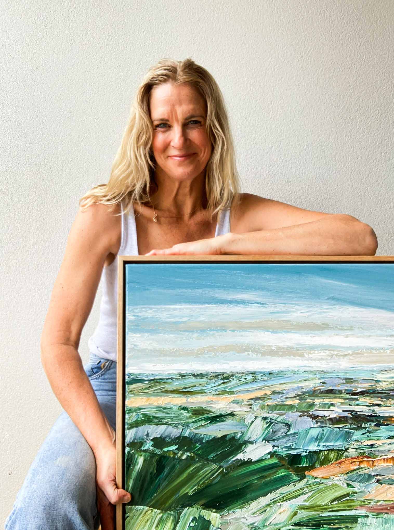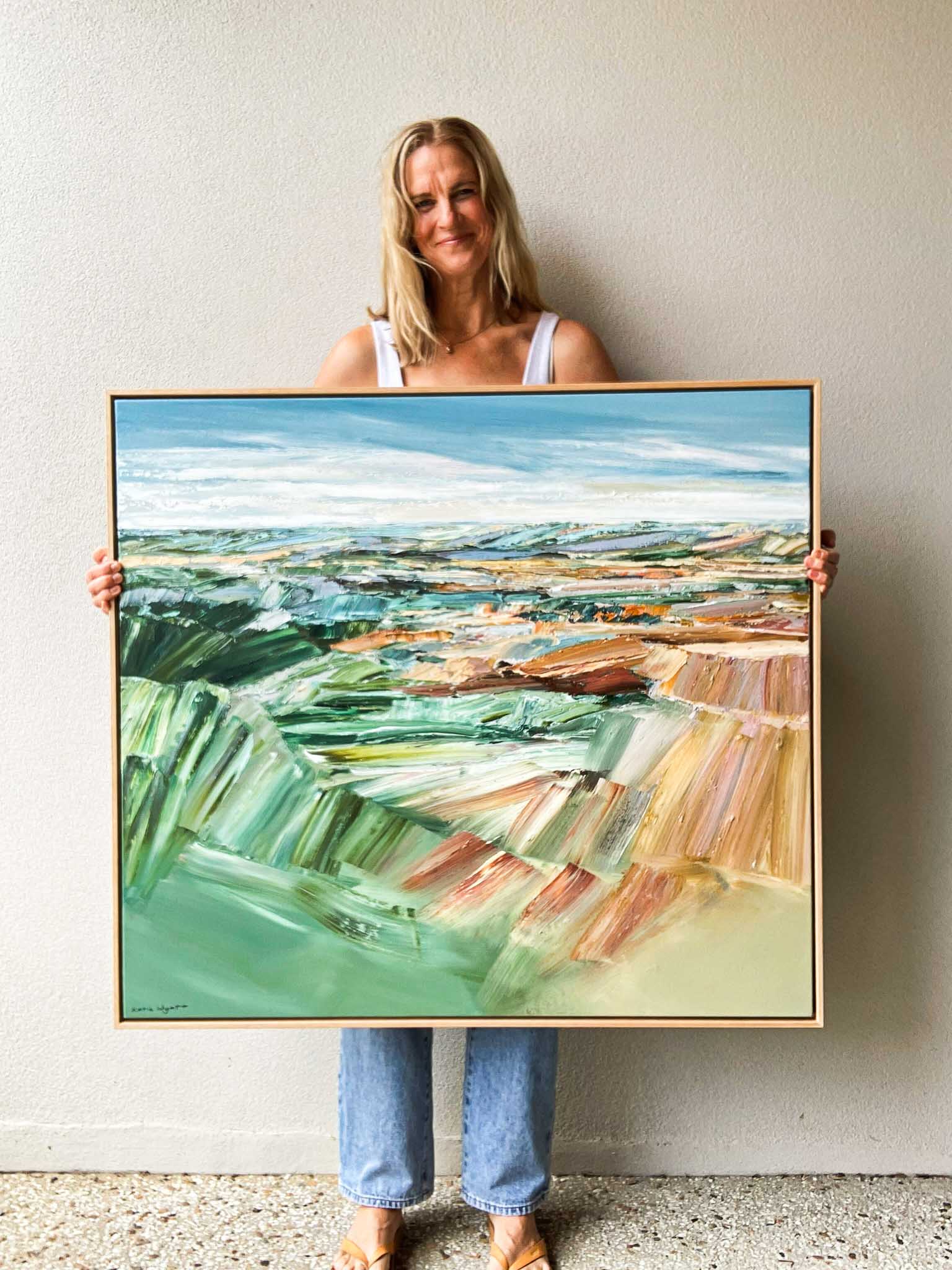 Born in 1974, Katie Wyatt, paints large format impressionist pieces that are heavily textured, impasto works based on her own experiences, memories, photographs and recollections. Katie’s graphic design background is also evident through her solid compositions and strong colour contrasts.