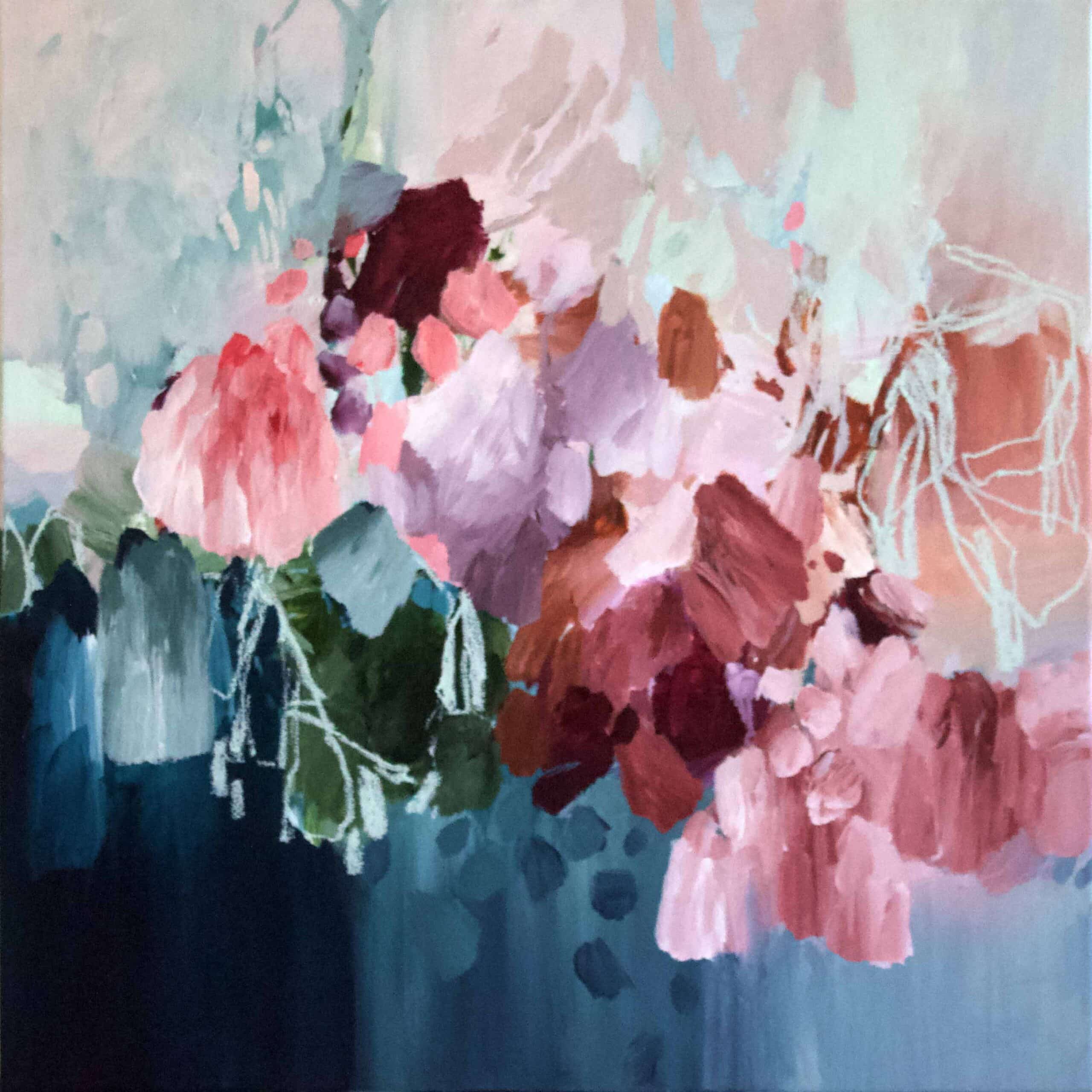 Acrylics and oil stick on cotton canvas, Framed in Tasmanian Oak