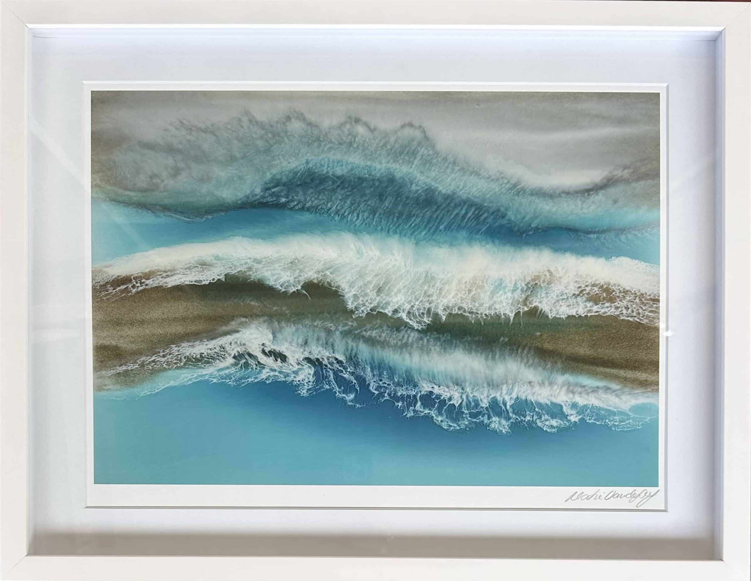 Martine Vanderspuy has had a lifetime love affair with the sea, resulting in her aerial inspired resin art. Through experimentation, she has mastered the difficult process of painting with resin, creating photo realistic work depicting the moods of the ocean. Martine’s paintings inspire the feeling of movement and open a visual window onto the sea. Her bold compositions use the fluidity and translucency of resin to capture dazzling effects of light and water.