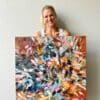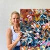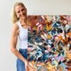 Her practice involves pushing the acrylic paint medium to its limits, dripping and layering paint onto the canvas until a story is written. The final image evolves from the layers sometimes subconsciously.