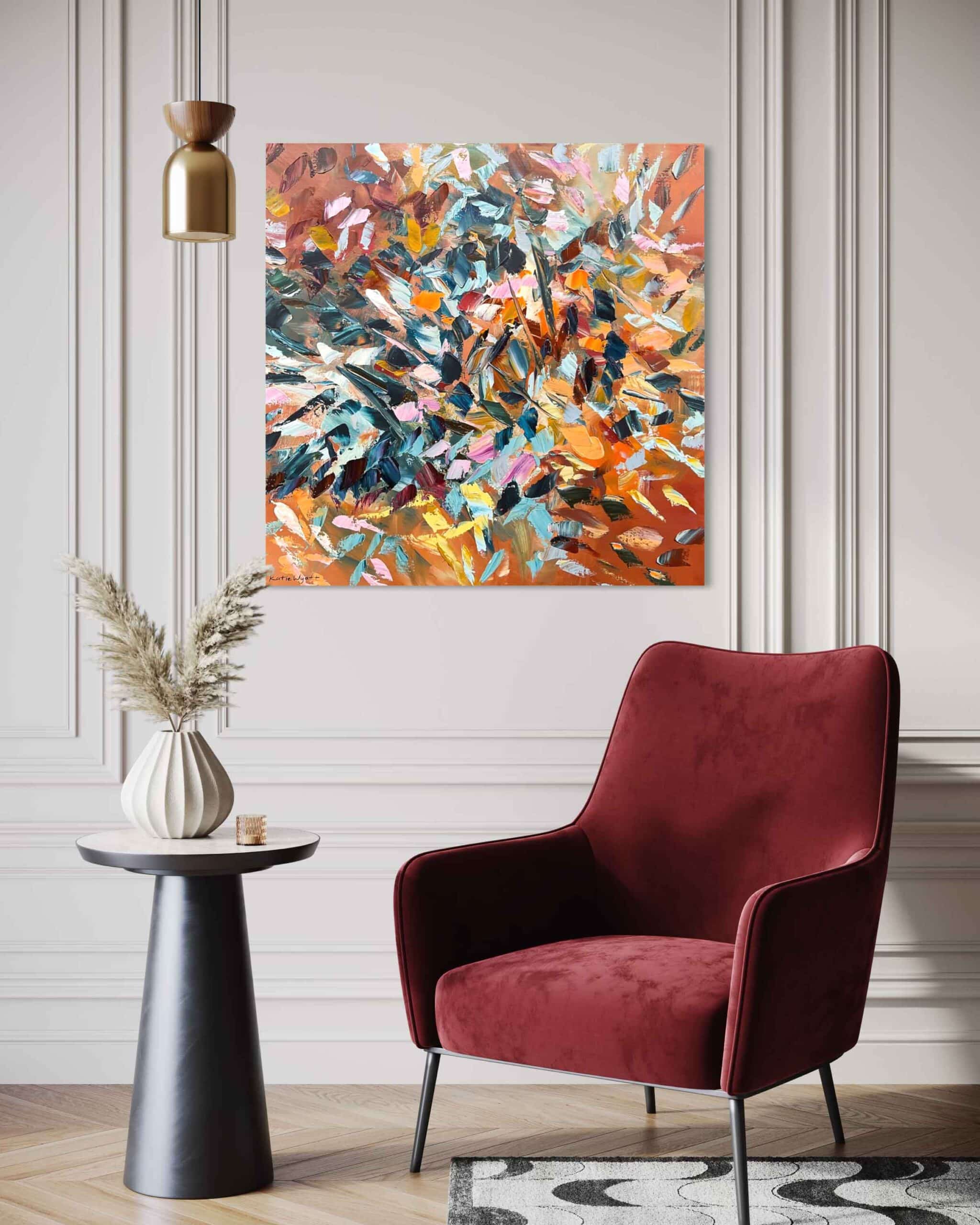 Simply send us a front on photo (jpeg or PDF) of your wall space then tell us which artwork you’re considering and the size. We will then super impose the artwork onto your wall, allowing you to be totally sure that the artwork you’ve chosen is just right for your space.