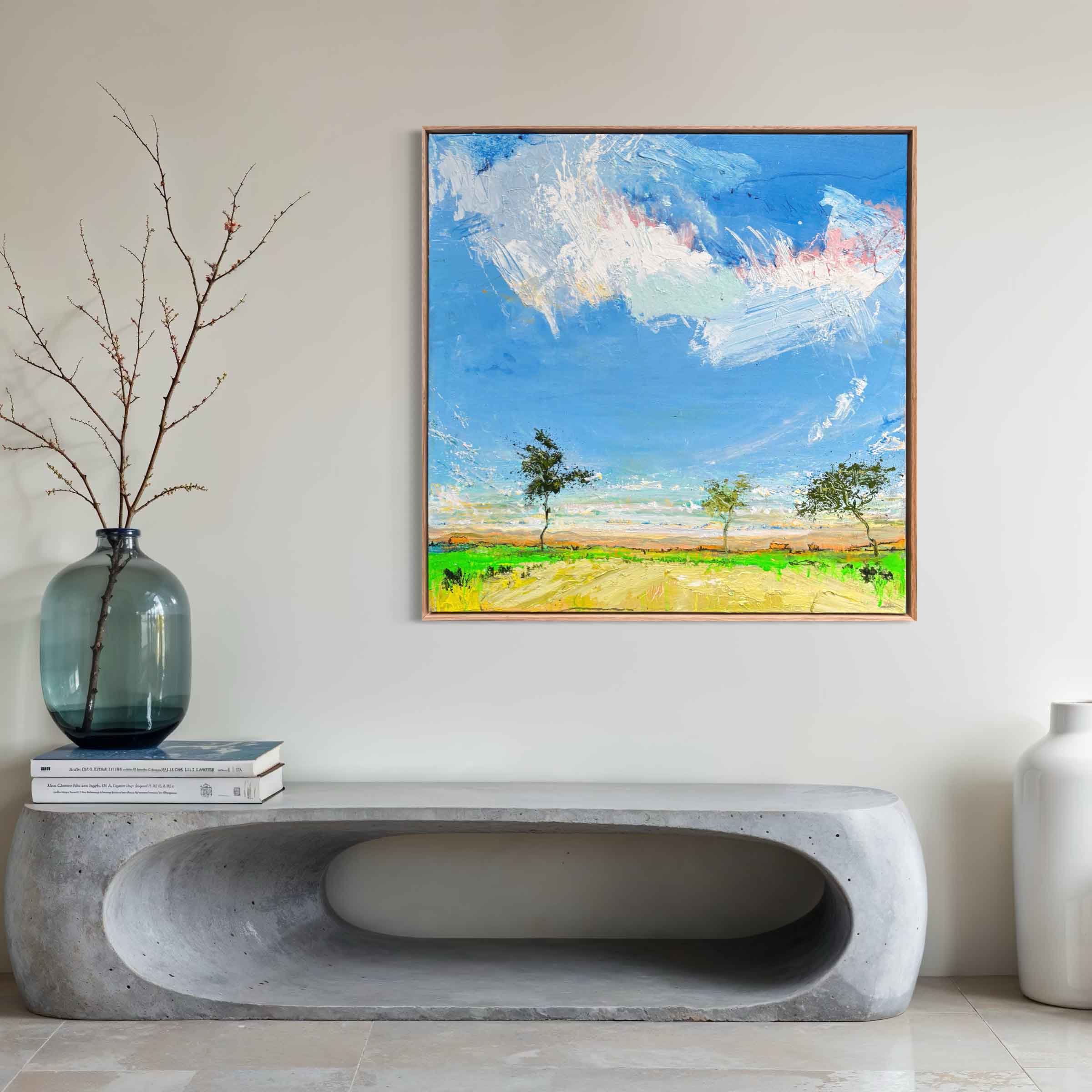 Simply send us a front on photo (jpeg or PDF) of your wall space then tell us which artwork you’re considering and the size. We will then super impose the artwork onto your wall, allowing you to be totally sure that the artwork you’ve chosen is just right for your space.