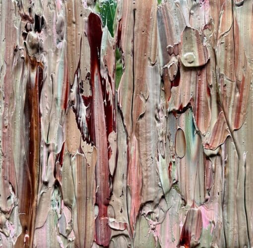 Martine’s bark series are inspired by the textures and colours of the Australian Gum tree bark. Using pigment inks on canvas, creating the organic details in her bark paintings.