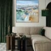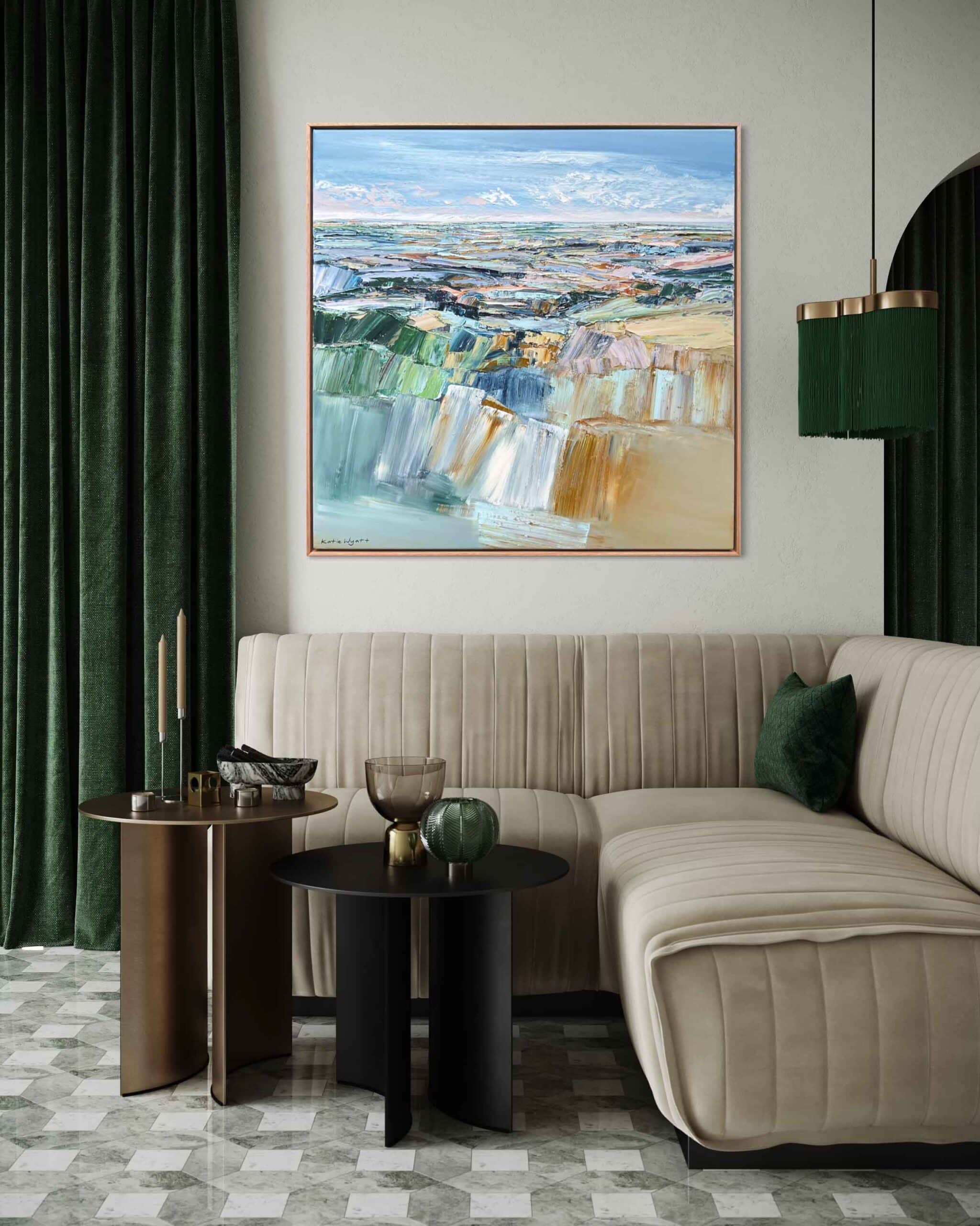 Simply send us a front on photo (jpeg or PDF) of your wall space then tell us which artwork you’re considering and the size. We will then super impose the artwork onto your wall, allowing you to be totally sure that the artwork you’ve chosen is just right for your space.