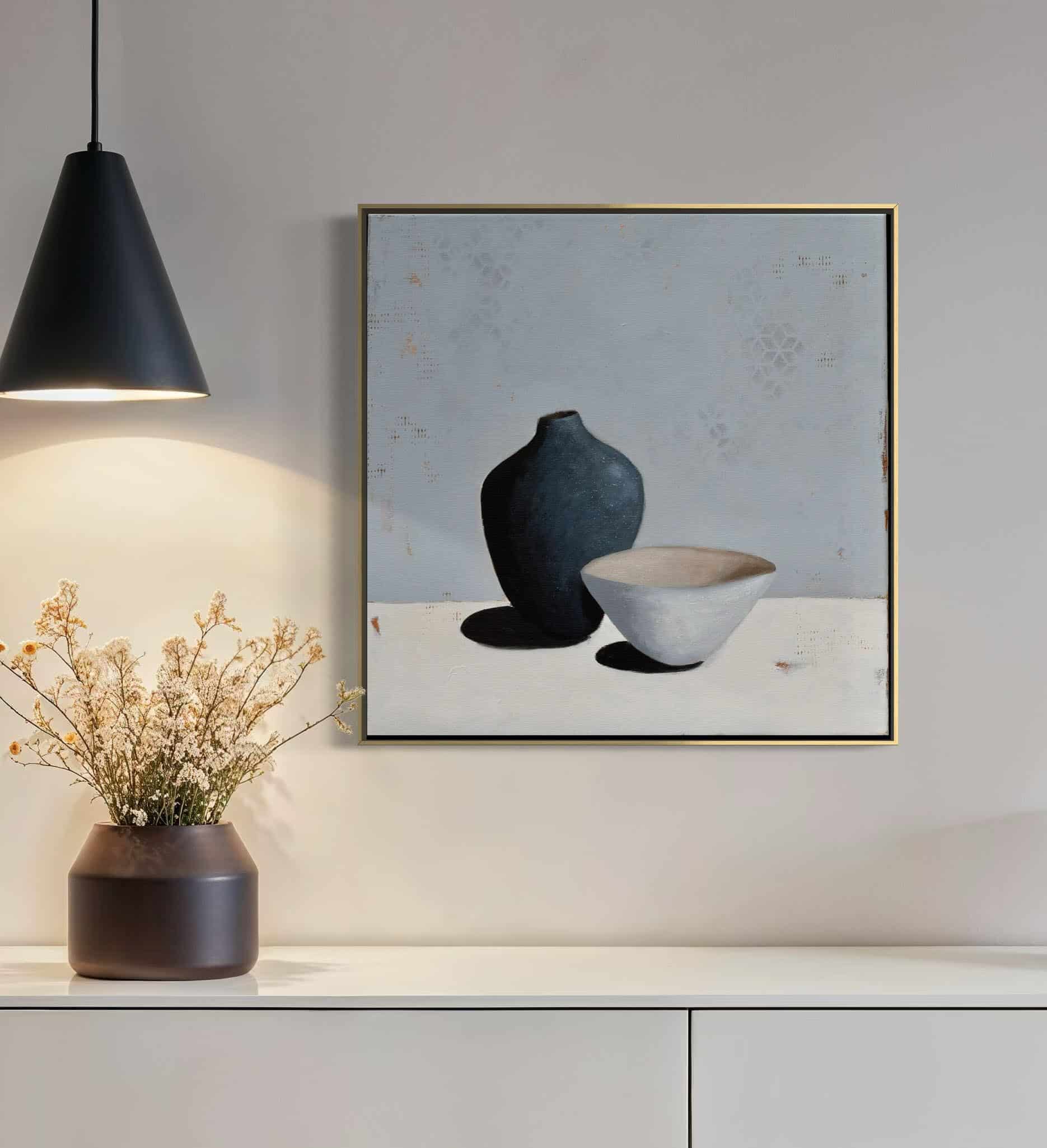 Simply send us a front on photo (jpeg or PDF) of your wall space then tell us which artwork you’re considering and the size. We will then super impose the artwork onto your wall, allowing you to be totally sure that the artwork you’ve chosen is just right for your space.