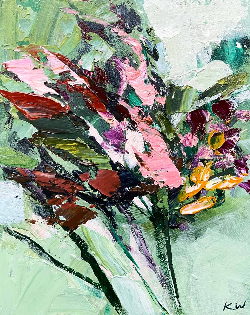 Born in 1974, Katie Wyatt, paints large format impressionist pieces that are heavily textured, impasto works based on her own experiences, memories, photographs and recollections. Katie’s graphic design background is also evident through her solid compositions and strong colour contrasts.