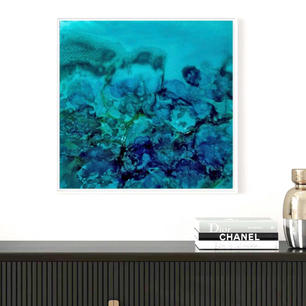 Through experimentation, she has mastered the difficult process of painting with resin, creating photo realistic work depicting the colours of the reef. Martine’s paintings inspire the feeling of movement and open a visual window onto the sea. Her bold compositions use the fluidity and translucency of resin to capture dazzling effects of light and water.