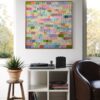 Her playful abstract works are fun, bright, and full of happiness. She enjoys working with vibrant colour palettes that bring smiles to faces and joy to the observer. Her art brightens up spaces with the power of colour and simplicity.