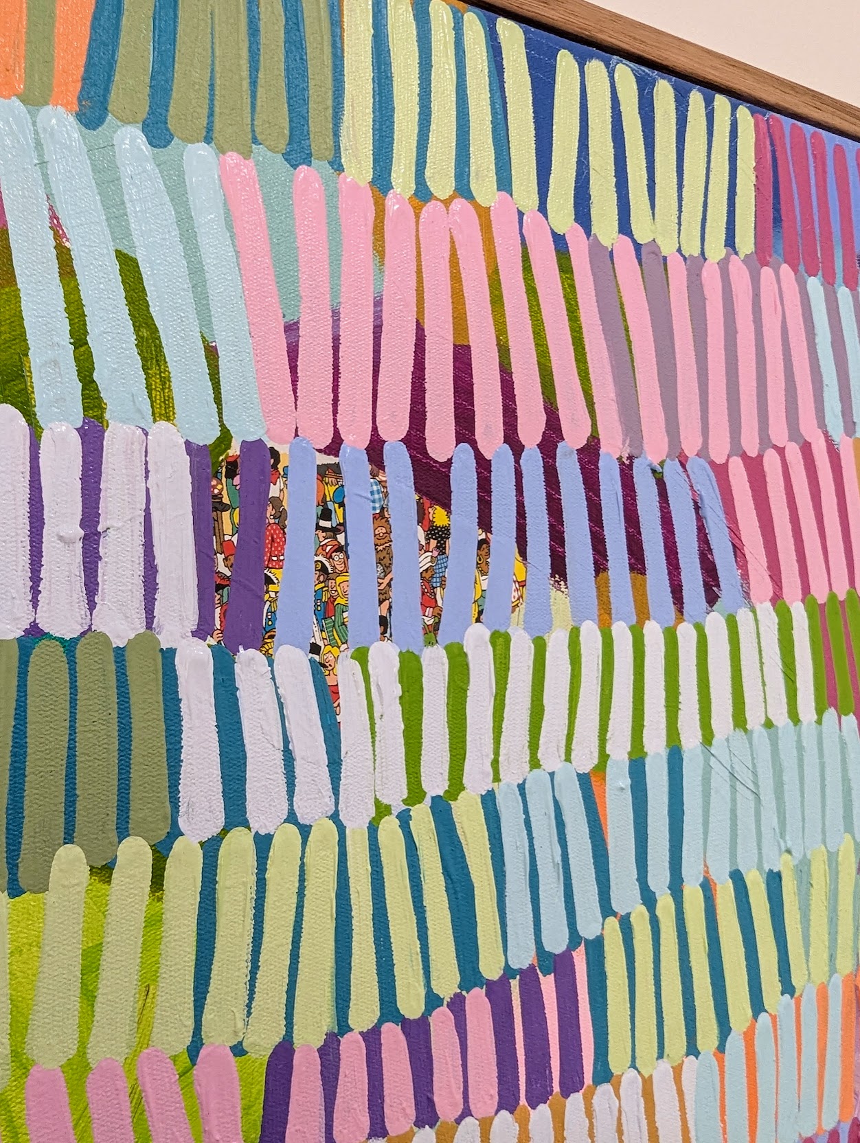 This series captures the nostalgic feeling of searching through those chaotic pages of the “Where’s Wally?” books in search of the little guy in stripes. Small pieces of the original books are hidden inside the artwork, tucked in amongst the lines for you to discover.