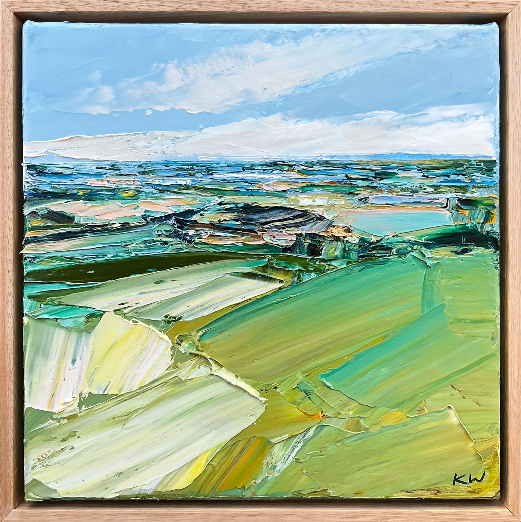Born in 1974, Katie Wyatt, paints large format impressionist pieces that are heavily textured, impasto works based on her own experiences, memories, photographs and recollections. Katie’s graphic design background is also evident through her solid compositions and strong colour contrasts.